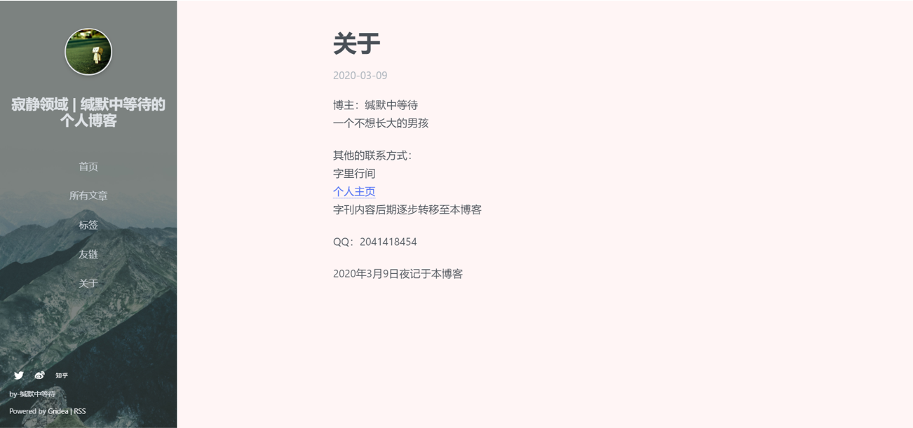 上面那张图是我在高三的时候建立的博客,当时用的还是Gridea推送+Coding page代码托管,进行静态博客搭建。这是也我目前所能够了解到的最为简单快速的搭建方式。前阵子想尝试用Hexo重新建立一个静态博客,也算是给我的博客翻新了。结果一不小心将Coding上存放我博客文件的仓库删掉了。最后不得不将建立静态博客这一议程提前进行。